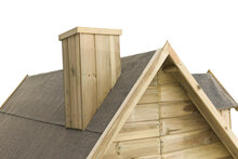 Sehr luxuriöses und umfangreiches Kinderhaus mit Boden. Enthält Fenster unten und oben und einen Kamin mit einer Treppe mit einem Dachboden auf der Innenseite. Einfach durch die vormontierten Dach- und Wandteile zu bauen. Schön mit Zubehör, z.B. einem Briefkasten oder einer Tafel zu erweitern.
