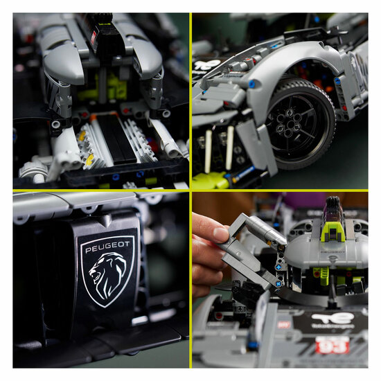 Vier 100 jaar racen op Le Mans in 2023 met deze LEGO Technic PEUGEOT 9X8 24H Le Mans Hybrid Hypercar auto (42156) bouwpakket set voor volwassenen. Terwijl de auto zijn debuut maakt in de LMH-klasse van het World Endurance Championship, geniet jij van een boeiend project waarbij je de nieuwste innovaties in de racesport nauwkeurig nabouwt.Bewonder de details terwijl je de racewagen met een schaal van 1:10 in elkaar zet. Bekijk het hybride systeem met een V6-motor die in verbinding staat met de achterwielen en een modelversie van de elektromotor en accu. Ontdek de ophanging, speciaal ontworpen voor dit sportwagen model, en de besturing via het stuur of het tandwiel boven op de auto. Glow-in-the-dark koplampen zorgen voor de sfeer van een echte 24-uursrace.De LEGO Builder app biedt een eenvoudige manier om de instructies bij de hand te houden. Zoom in en draai modellen in 3D, bewaar sets, houd je voortgang bij en doe inspiratie op voor je volgende model.Afmetingen: dit LEGO Technic bouwmodel is ca. 13 cm hoog, 50 cm lang en 22 cm breed.Bevat 1775 onderdelen.